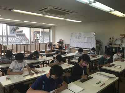 教室での暗黙のルールに採点に使う時間ルールがあります。その時間内に済ます事にはいろんな相乗効果を考えてのわけですが、終わらない子は必ずいます。そこで終わらない子の応援者の輪ができ始め、いつしかその工夫を伝えあっている光景が見え始めました。 |