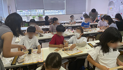 日焼け顔の子どもたちは夏休み明け早々に検定試験や地元連盟主催のビギナーズ大会に参加します。教室に入り、準備が整った子どもたちは次々に「○分お願いします」、中には教室ドアを開けながら言ってくるお調子者もいて早速の注意を一つもらいます。(笑)普段のプリント練習の子たちからは練習内容の確認の声が上がり、次々と授業スタートです。みんなしっかりしてきたなぁ、と嬉しくなります。練習が大変と思う時間は上達に繋がっていると感じます。